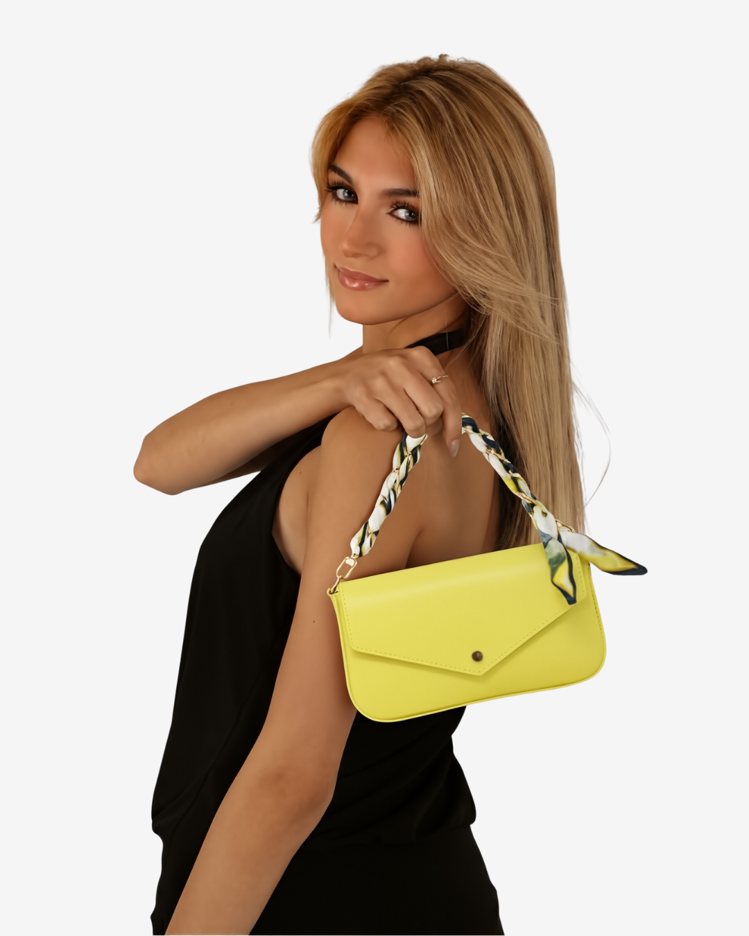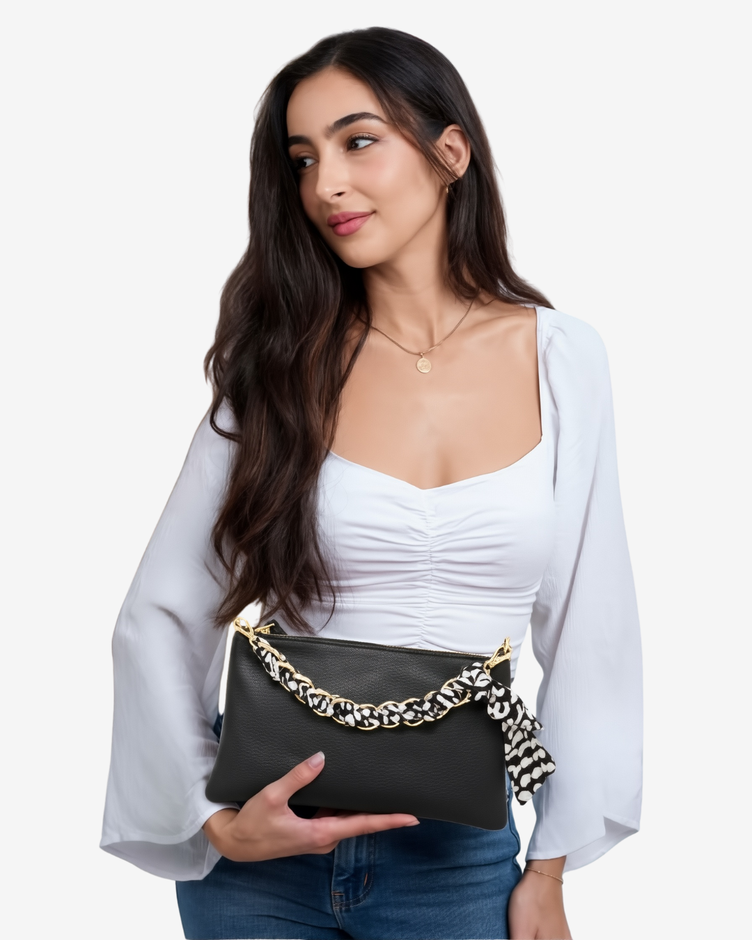 Crafted from high-quality Italian leather, the GF0603 Crossbody Clutch comes with a convenient top handle and a long-shoulder chain for effortless transportation of your phone and essentials.Measurements: 7"W x 5"H x1"W