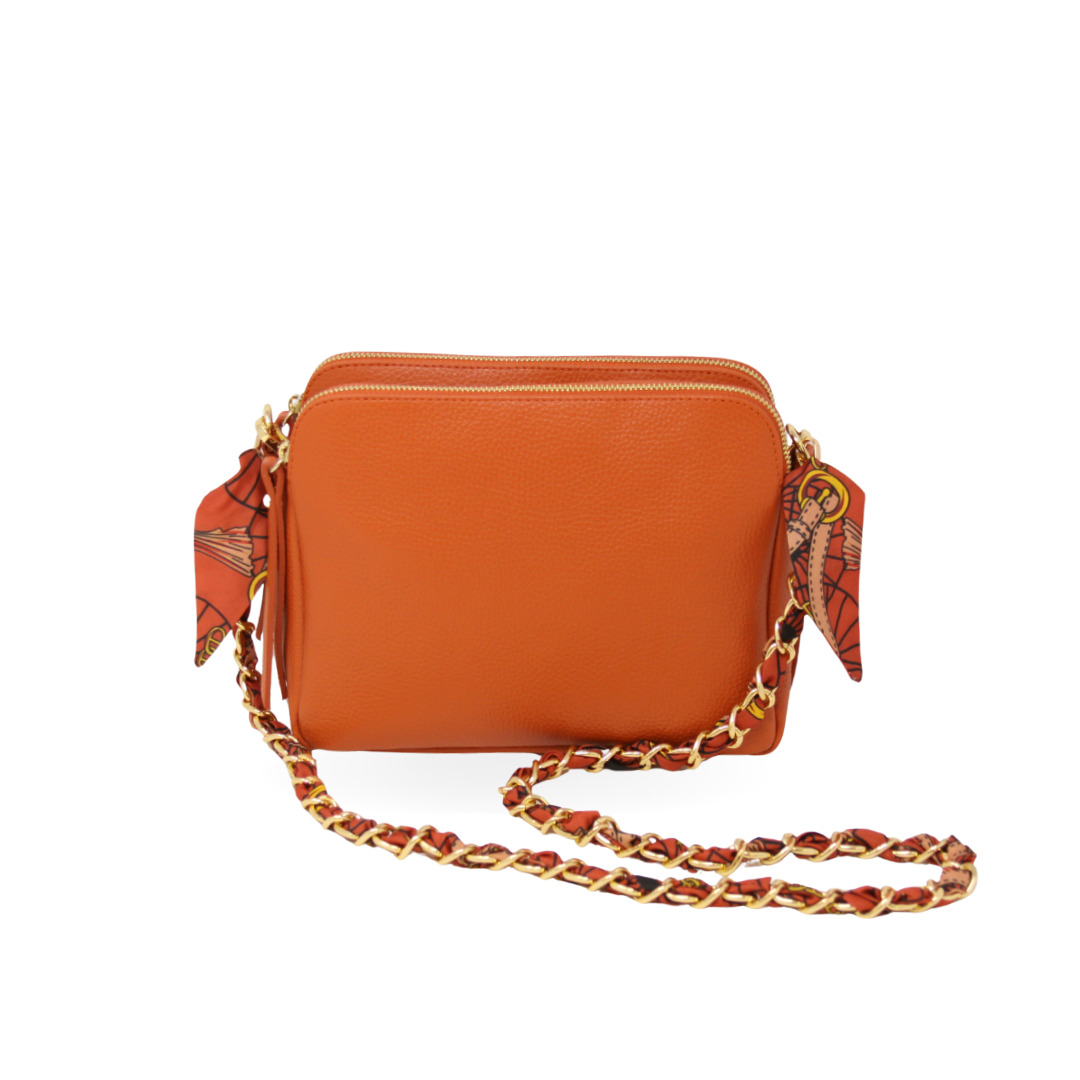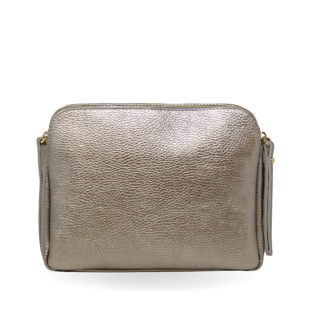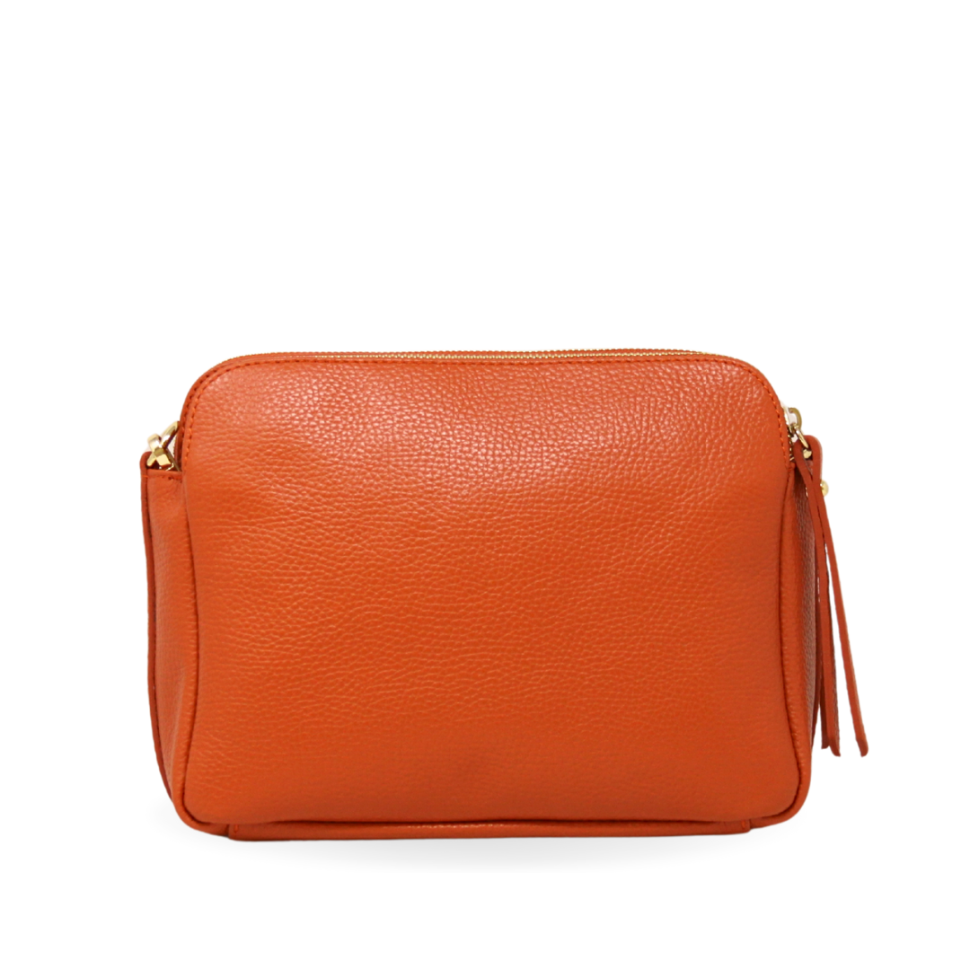 This elegant crossbody purse features genuine Italian leather and a slim profile that balances style with practicality. It includes three main compartments—two secured with full-length metal zippers and a central section with a magnetic snap closure. The long, adjustable strap allows for versatile wear as a shoulder bag or cross-body, providing convenience and comfort for everyday use.