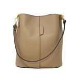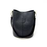 This bucket bag is crafted from genuine Italian Leather along with a convenient top handle and a removable shoulder strap. It has a hidden snap closure and gold hardware with an internal zipper making it the perfect blend of style and functionality for your daily needs.