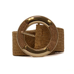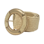 This straw belt adds the perfect touch of texture to any outfit. With a shiny gold buckle and comfy fit, it’s great for styling over dresses or pants.