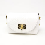 Our GF0877 pouch crossbody is crafted from Italian leather that features a croc-embossed design and has a shoulder strap for crossbody wear.