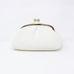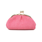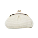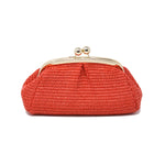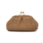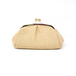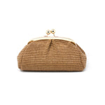 This GF1011 is made from raffia and leather, features an interlocking closure, and comes with an optional shoulder strap for crossbody wear.