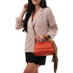 This GF2565 Leather Handbag is crafted with Italian leather. The convenient grab handle and detachable crossbody strap provide versatility and comfort. The flap-over design with a popper fastening offers easy access to the main compartment.