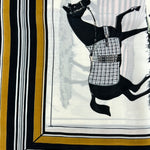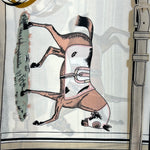 This mid-size scarf features a distinctive horse pattern, blending classic equestrian style with versatile wearability. Its moderate dimensions make it perfect for layering or tying in various ways, adding a sophisticated touch to any outfit. Crafted for both comfort and style, this scarf is an ideal accessory for everyday wear or special occasions.