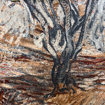 The YF10-M15 Scarf features an abstract design with a highly textured surface that highlights a dynamic blend of colors and brushstrokes. This artistic interplay creates a visually stunning textile, making the scarf a unique and stylish accessory that elevates any wardrobe with both depth and movement.