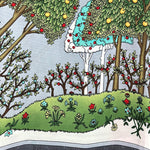 YF10-M25 DESIGN FILLED WITH DETAILED TREES,FLOWERS,AND LUSH FOLIAGE MID SIZE SCARF