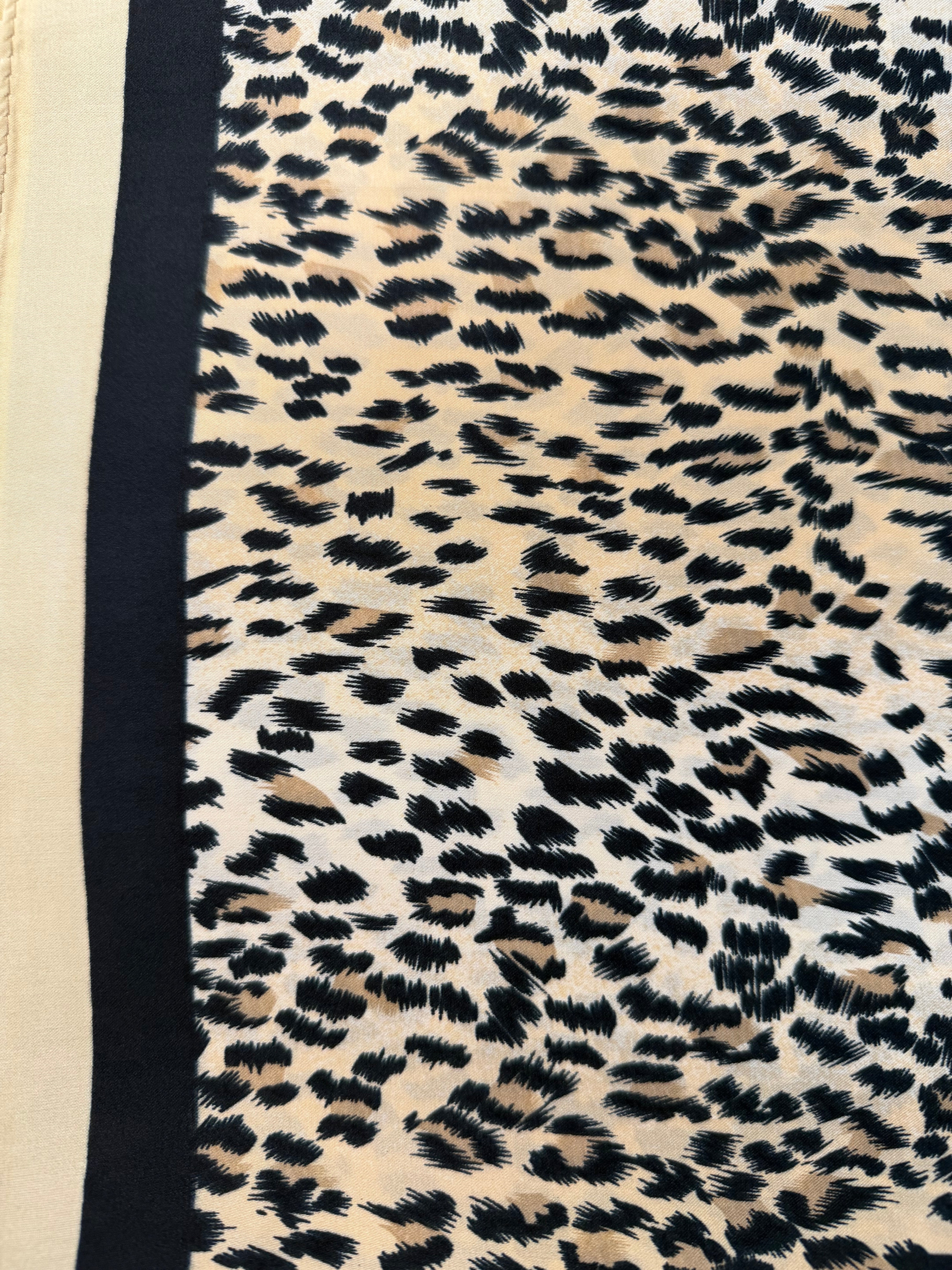 Upgrade your accessory collection with this sophisticated leopard print square scarf. Its versatile mid-size format transitions effortlessly from casual to polished looks. The timeless animal print adds visual interest while complementing any wardrobe. Perfect for wearing around your neck, as a headwrap, or draped across your shoulders, it offers endless styling options an essential for fashion-forward individuals.